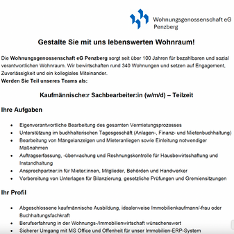 Kaufmännische:r Sachbearbeiter:in (w/m/d) – Teilzeit